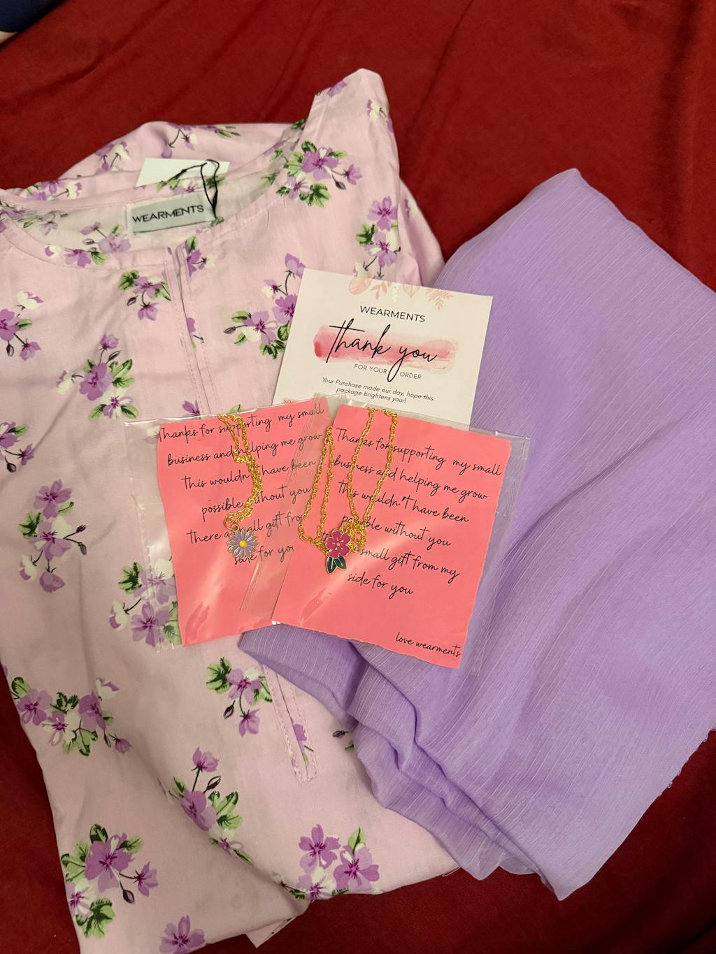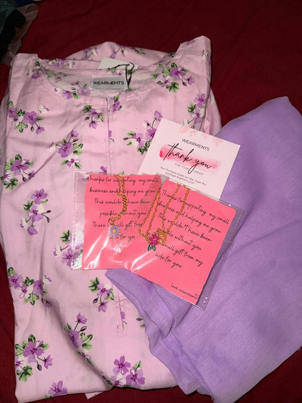 “Dress bohat hi achi hai ❤️ Fabric soft aur comfortable hai, dupatta bhi pyara hai aur stitching neat hai. Sath ek pyara sa surprise gift bhi mila 🎁 Bohat acha experience raha!”